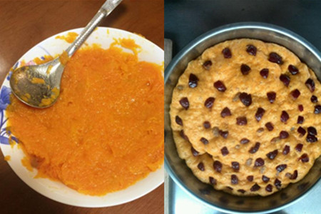 3、把蒸好的南瓜从锅中取出,用勺子将南瓜捣成泥状。待南瓜泥放凉后,把酵母加入其中进行充分地搅匀。一定要等南瓜泥凉后,才能将酵母放入南瓜中,不然高温容易把酵母杀死。
