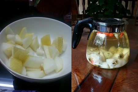 将买来的梨子洗净后切块同茶叶放入锅中,倒入适量的水,开大火。等到水沸腾了以后,再加入几块冰糖,然后记得要及时的搅拌,让冰糖均匀的化开。然后就可以准备茶具了,先在茶具里倒入一些凤梨汁,然后等到锅中的水再次沸腾就可以出锅了。