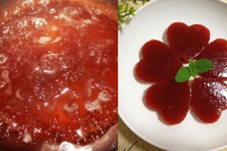 建议可以去市面买一些做曲奇的模具,比如爱心桃型的模具。在它成糕之前把它倒入模具中,成型之后你就可以看到一个精致的桃心山楂糕啦!【女物原创未经允许,谢绝转载!】