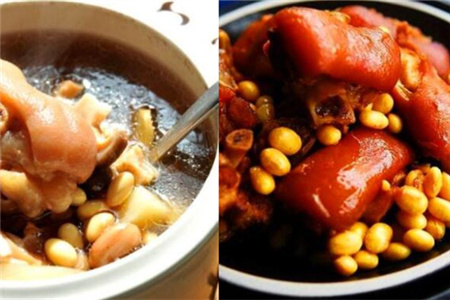 猪蹄炖黄豆小编平时就特别喜欢吃,这道菜含有大量的蛋白质,是不错的食补佳品。猪蹄炖黄豆这道菜尤其对女性有比较好的食疗效果,因为黄豆中含有天然的雌性激素可以调整女性的内分泌,而猪蹄含有大量的胶原蛋白可以起到丰胸美容的效果,爱漂亮的妹妹可以不要错过了这道美食哦!