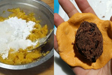 3、豆沙馅地瓜饼