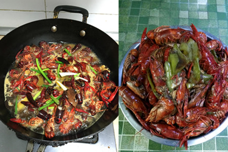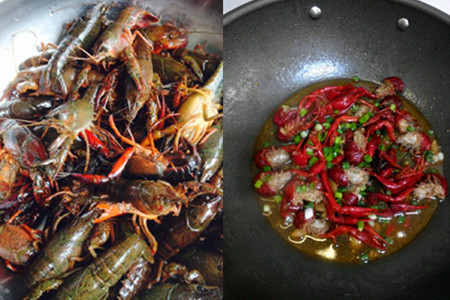 step6:将处理过的小龙虾放入锅中,同配料一起进行翻炒。