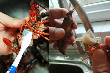 step3:取出浸泡完毕的小龙虾,将其清洗干净,同时拉出虾肠。