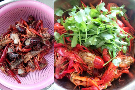 step3:对小龙虾进行处理。将其洗净后放置一侧备用。