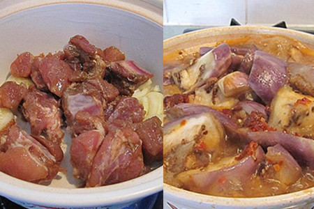 第一种:香辣排骨茄子煲。