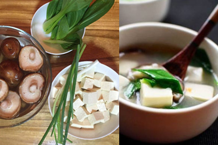 step9:待水烧开后,往锅中加入豆腐块,同时加入适量的盐和生抽进行调味,待汤汁煮至呈微白色时,再放入紫苏叶,焖煮两三分钟,关火。