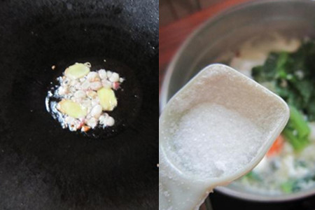 第四步,煮汤。将锅中倒入适量的食用油,倒入生姜大蒜翻炒出香味后往锅中加入适量的清水,大火将锅中的水煮开,将清洗干净的芥菜倒入锅中煮2-3分钟后将处理好的咸蛋液倒入锅中。盖上锅盖转中小火让锅中的食材继续沸腾2分钟,开锅撒上适量的鸡精搅拌一下,尝一下咸淡,酌情加入食盐就可以关火出锅了。