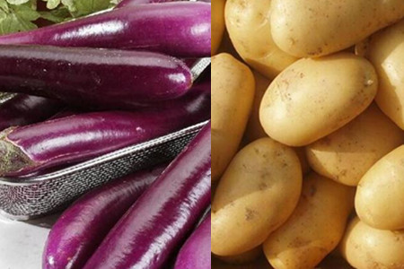 新鲜的茄子表皮颜色紫黑,自带油光,摸上去圆润柔滑,切开茄子里面的籽是白色的,选择这样的茄子制作出来的菜肴才够可口。老茄子外皮皱巴巴,颜色偏紫红色,捏一下很硬,掰开里面的籽都是黄色,这样的茄子味道苦涩,做菜不好吃。土豆有两种一种脆的一种沙的,制作这道菜的时候选择质地脆的土豆,口感脆爽还不容易糊锅。