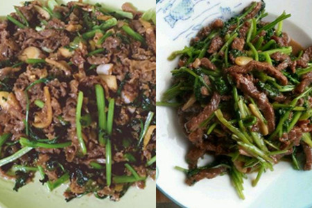 这种香菜放置的时间太久,不仅吃起来味道发苦,而且香味流失,取而代之的是发霉发臭的味道。香菜也有多种分类,野生的香菜枝干绿中带红,香味比普通的香菜浓郁,如果可以尽量选择野生的做出来的菜肴味道会更好。牛肉这里是直接炒来吃的,所以尽量选择肉质嫩一点的牛肉,选择牛背上的牛肉就比较好。