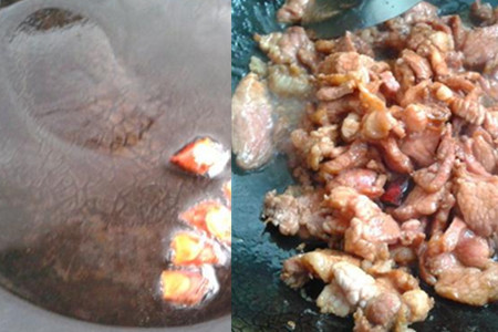 第三步,炒肉。取一口锅,将锅内壁清洗干净,倒入适量的食用油,大火将锅烧热,将腌制好的肉片倒入锅中,用锅铲将肉片炒散,倒入适量的食盐,豆瓣酱,豆瓣酱翻炒的时候会冒出很多红油,红油包裹住肉片会让肉片酱香更浓郁。