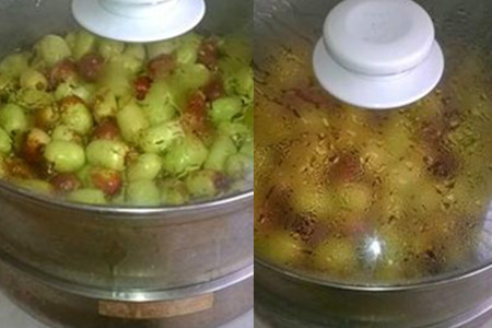 第三步,蒸冬枣。往锅中加入适量的清水,放上蒸笼,在蒸笼里铺上一层纱布,将风干了表面水分的冬枣倒入蒸锅中,盖上锅盖,大火将锅中的水烧开后蒸10分钟。如果冬枣的数量比较多,可以分两到三次蒸冬枣,蒸的时候要让冬枣彻底蒸熟才可以哦。蒸熟的冬枣表面柔软,肉质甜糯,而且带有浓厚的冬枣香味。
