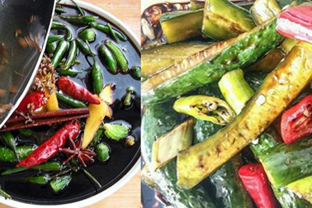 腌黄瓜是一道非常家喻户晓的家常小菜,制做原料就是黄瓜加上红辣椒,再加入一些调料腌制而成。腌黄瓜条要求口感必须清脆,所以选黄瓜时以旱黄瓜为宜,旱黄瓜的质感比较有韧性,水分含量少,非常适合做腌菜。旱黄瓜不用特意买品种高级的黄瓜,但是一定要选用新鲜的,否则腌制的过程中很容易发霉。在农贸市场,我们可以买到新鲜的旱黄瓜。