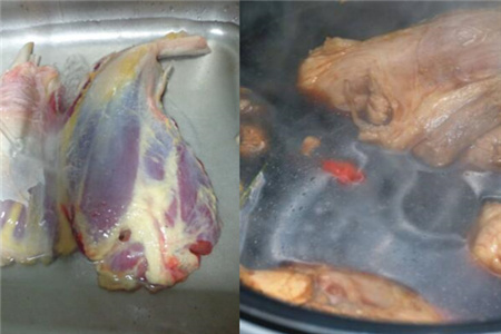 卤料:鲜酱油15毫升,味精5克,盐20克,生抽45毫升,高度白酒50毫升(50度左右),大葱1把,生姜1块,冰糖10克,八角2个,花椒10粒,红米15克,白芷1片,丁香2朵,香叶1片,草果2个,肉桂1片,甘草2克。
