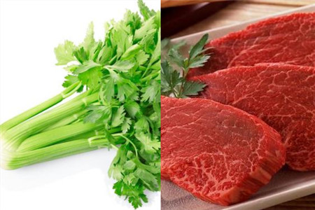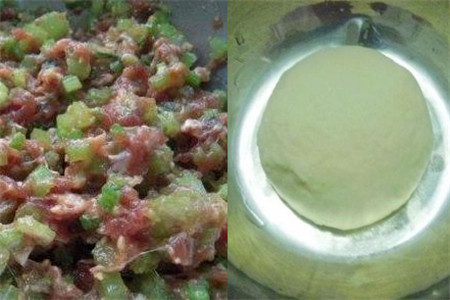 准备主料500克的面粉、牛肉、芹菜,适量的辅料油、葱、姜、盐、五香粉、酱油。先把准备好的新鲜牛肉剁成肉泥状,做成馅,然后加入适量的酱油、油以及五香粉,再把热水分三次加入到牛肉馅中,朝着一个方向不断搅拌。之后把葱和姜切成碎末状,切好后再把葱姜碎末加入到处理好的牛肉馅中,不断搅拌均匀。之后在处理芹菜,把芹菜的叶子摘去。
