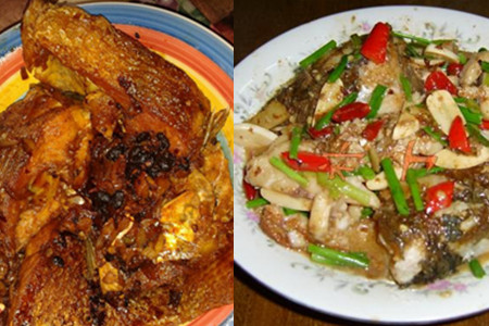 4、利用锅中剩余的油,倒入蒜末和生姜片翻炒出香味。待其香味开始散发后,将煎好的鱼块再次下入锅中。往里倒入适量的啤酒,淋上些许的酱油。根据自己的嗜辣程度,加入些许的青红椒进行充分地煸炒。待其汤收浓后,便可盛出装盘食用。