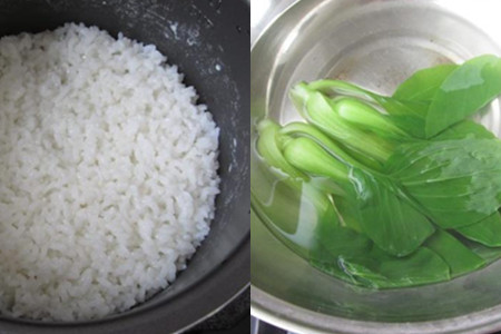 食材:大米150克、五花肉500克、洋葱200克、小油菜150克、老抽、生抽、蚝油、冰糖、八角、姜、白酒、油。