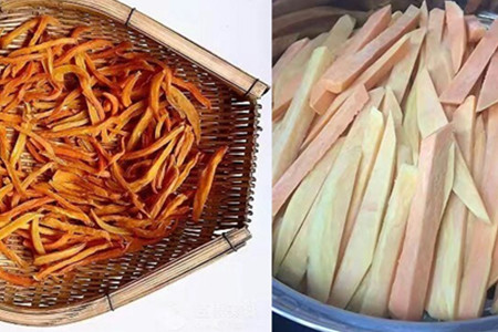 风干了之后就将皮去掉然后切成拇指那么粗的长条,然后再放进蒸笼里面蒸熟。蒸熟了之后就将地瓜晒干,地瓜晒干了就是地瓜干了。这个做法是不是特别的简单易做啊?喜欢吃地瓜干的朋友们不妨试试哦!
