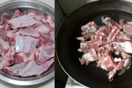 2、在煮锅之中下入适当的清水,水煮开沸腾后。把羊排一齐放入煮锅中焯一遍水,去除掉羊排的血沫。