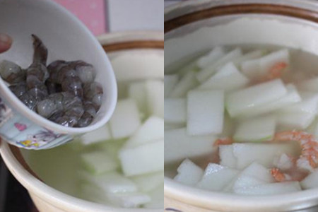 为了冬瓜汤做得好吃,冬瓜一定要挑选新鲜的哦,那种放久了出现了腐烂了的冬瓜还是不要挑选比较好。基围虾一定要选择活的,活的才够新鲜,肉质Q弹有劲,比较好吃哦。