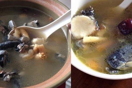第二款:天麻墨鱼汤材料:天麻片十克,墨鱼五百克,火腿二十克,香葱一根,生姜一块,食盐适量,白砂糖少许