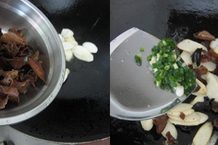 将锅清洗干净,烧热,倒入适量的食用油,将切好片的山药倒入锅中翻炒,加入适量的食盐,山药不是很好炒熟,所以要大火多炒一下,待到山药颜色变成半透明就将处理好的木耳倒进去,翻炒锅中的食材,直到木耳炒熟了就可以起锅了,起锅的时候撒上一点葱花会更香。