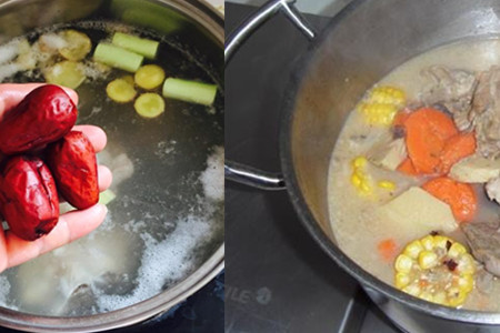 而且是鸡鸭鹅全都选用,这个是可以根据风俗来决定的。取一个砂锅,将猪肉切成大块放进去,然后把中药沙袋也到进去,加适量的清水。把准备好的葱姜蒜以及适量的料酒、精盐放进去,砂锅用大火加热至沸腾后,转为小火慢炖。