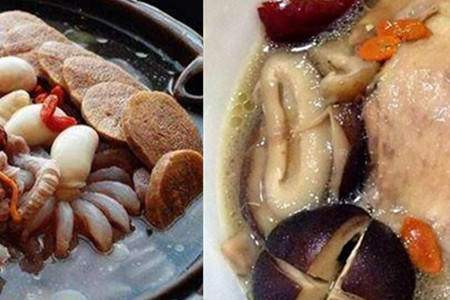 制做前需要将原料准备好。中药原料我们需要准备炒白术、茯苓、当归、肉桂、党参以及黄芩,如果不喜欢中药的味道,可以适量的加一些甘草。将准备好的中药放进沙袋里,中药每份10克左右就可以,然后用绳子封口。然后准备瘦猪肉、猪肚和墨鱼清洗干净,然后需要沥干水分,再准备一些葱段。有一些地方不用猪肉做这道美食,他们多数都用家禽类。