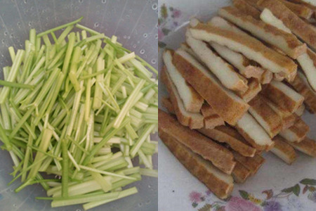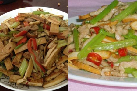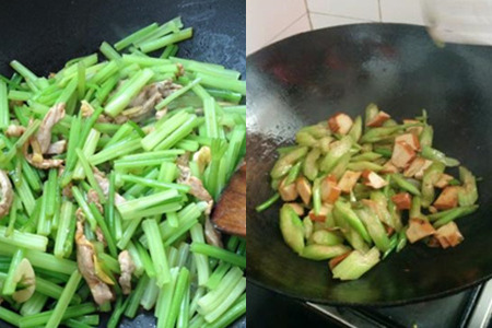 下面,就给大家介绍芹菜香干的做法。准备好西芹,将芹菜叶子摘掉,并将芹菜切成合适的小段,清洗干净后待用。将葱姜蒜也准备好待用。接着,倒油热锅,锅热了之后将葱姜蒜在锅里面炒出来香味,并倒入香干大火快速翻炒。 等香干炒出来香味之后,再加入准备好的西芹,翻炒两下之后,加入食盐、味精、十三香进行调味就可以了。