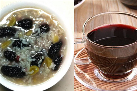 桑果干泡酒也是非常好的,将桑果干和枸杞一起放进普通的红酒里面浸泡两天就可以饮用了,非常适合女生喝,可以补血养颜。
