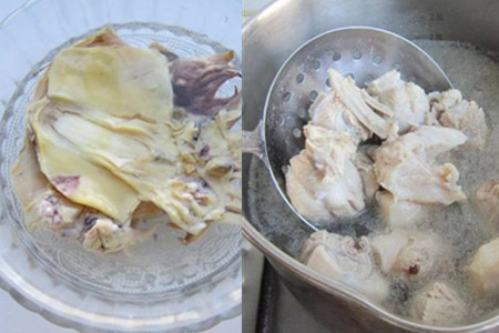 墨鱼一定要泡久一点,这样才能清洗干净。鸭子切块后放入开水锅里烫一下,可以去掉一些鸭子的土腥味。