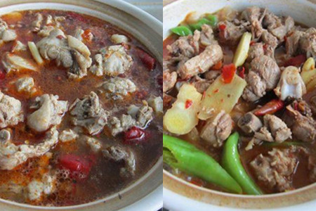 将干净的砂锅置于火上,放入烫过的鸭块,加适量花椒粒、胡椒粒、干辣椒和大蒜,烹入适量料酒,加少许冰糖,注入足量清水没过鸭块,加盖,调至大火烧开。烧开之后,调至小火,开盖,加入适量豆瓣酱和生抽,加盖,继续煲四十分钟。四十分钟后,开盖,加入姜片和青椒段,加盖继续煲几分钟即可熄火。