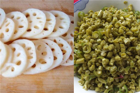 同样是先将莲藕削皮之后切成片儿,但是不要切的太厚,如果切的太厚,炒出来的藕片不入味,就没有那么好吃了。炒莲藕的时候可以再准备一点泡豇豆,让它和莲藕一起炒,会有不一样的味道出现,但还是不要放的太多,不然会很咸。