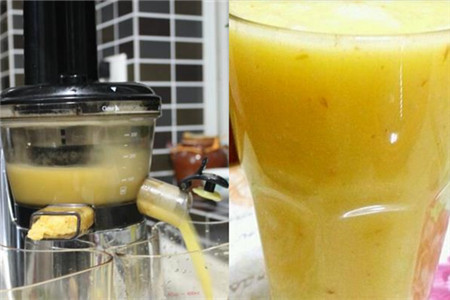 用300克苹果、150克去皮菠萝和25克姜制作蔬果汁时,把苹果洗干净去皮、核后且切成丁,菠萝也要去皮切丁,并且要泡十几分钟,捞出再冲洗,生姜要切碎。然后把这些材料都放进果汁机中,还要加入适量的水,再搅打就好。这个蔬果汁营养非常丰富,能杀菌,抗过敏,促消化,消疲劳,还可以消炎镇痛,对体内循环系统的运行也有一定的刺激作用。