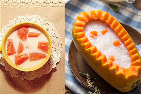 木瓜牛奶不仅是一份好吃点的甜品更是一个美容养颜的利器,木瓜富含丰富的酵素和维生素A,具有抵抗衰老、舒活肝脏、调养胃动力的功效,而且木瓜的营养价值含量高,对于丰胸健乳有极好的功效,所以很多一心想要丰胸的女孩子都会尝试木瓜丰胸法。