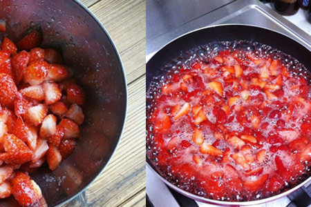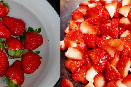 我们把草莓做成草莓酱就可以经常品尝美味了,虽然形状不一样,但是味道还是差不多的。新鲜的草莓买回来,需要浸泡一个小时,草莓的表皮隐藏着很多沙土,简单的清洗不能去除掉,也可以用专门的水果清洗剂清洗。草莓洗好后,用刀切成小块,这样就比较容易快速煮烂。锅内保证没有油脂,然后把草莓放进去,不用添加其他材料,用文火将草莓煮软。