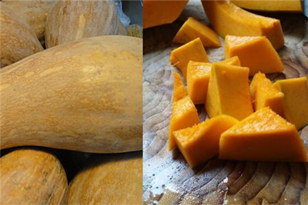 在煮南瓜绿豆汤之前,先要将绿豆放在水里面泡几个小时,不然绿豆不容易被煮烂,用来煮南瓜绿豆汤的南瓜同样也要选择老南瓜。将南瓜削皮之后洗干净切成块,南瓜不要切的太小,不然很容易被煮烂。