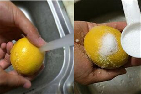 当我们已经选购好适合的柠檬之后,就可以开始清洗柠檬。由于柠檬的表皮比较粗糙,在清洗的过程中很容易被忽略一些小细节。为了让柠檬能够被清洗的更加干净,我们需要使用到一点食用盐。用盐来搓柠檬的表皮,可以很好的将柠檬表皮上的垃圾清理干净,同时还可以起到一定的杀菌作用,让我们在饮用和食用柠檬的时候可以更加的放心。