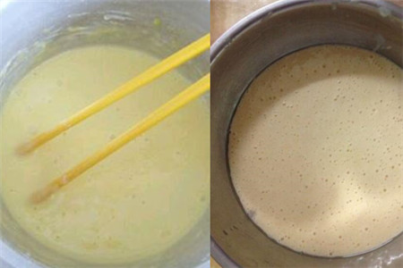 但是蛋黄也要将它打散,里面要加一点白糖,不然做出的蛋糕不甜。再倒入牛奶,但是尽量要用纯牛奶,因为只有纯牛奶做出来的蛋糕才有浓浓的牛奶味。将这些东西搅拌均匀之后在倒入面粉,面粉不要倒的太多,尽量让蛋黄也成为液体的形状。