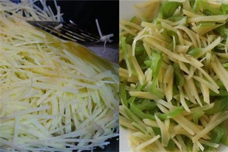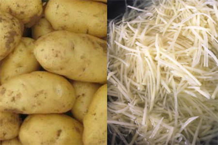 如果是炒土豆丝的话,我们在买土豆的时候,尽量买大一点的土豆,而且要选择表皮比较光滑的,这样才好切土豆丝。为了让土豆丝吃起来更脆,我们可以将土豆丝切好之后放在水里面泡一会儿,这样就可以将它里面的淀粉去掉。
