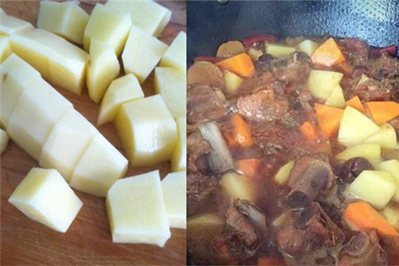 我们可以用土豆来红烧排骨,这也算得上是一种家常菜。用土豆来红烧排骨时,要先将土豆切成块,但是不要切的太小,不然很容易被煮烂。当排骨放入锅中翻炒以后,再加水,加入的水一定要将排骨淹没。如果是家里面有老人的话,可以让排骨多煮一会儿。