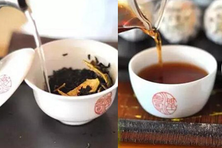 烧开一壶水,将开水倒入瓷杯中将普洱茶和陈皮完全浸没,用勺子将普洱茶和陈皮搅拌一下,让他们充分与开水接触,大概泡2分钟,这个时候普洱茶的叶子会完全展开,陈皮会吸水沉到杯底。看到这里就可以将茶杯中的茶水倒掉了。