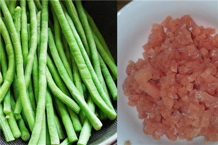 把猪肉洗干净以后放在菜板上剁成肉末,自己在家里面剁出来的肉末更加好吃,而且如果是在外面用机器打出来的肉末还不是十分卫生。在炒肉末豇豆的时候也可以准备几个泡辣椒,当油温变热的时候就将辣椒和泡豇豆放在锅里翻炒。