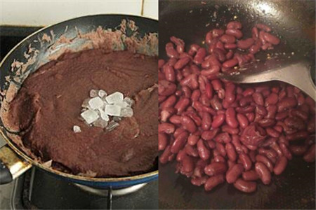 在锅中加入少量的植物油,油量可以根据个人制作的红豆量来决定,不可过多。然后将红豆倒入,期间需要加入红糖或者是白砂糖进行翻炒,由于糖在锅内会化成糖水,所以我们在翻炒的过程当中不可以分心,稍不注意就容易导致红豆炒糊,影响口感。红豆要一直翻炒,直到甜度适宜即可起锅,由于每个人的口味不同,所以加入的糖可以根据个人喜好决定。