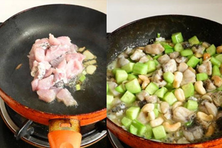 食材:石斑鱼肉350克、腰果50克、黄瓜80克、葱姜蒜、水淀粉、料酒、橄榄油、鸡粉。