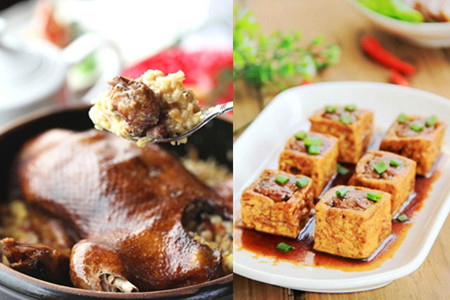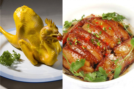 东江盐焗鸡、、梅菜扣肉、西湖醋鱼、八宝窝全鸭、狗肉煲、酿豆腐等等。