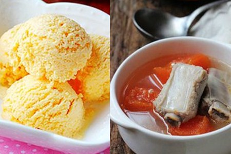 木瓜冰淇淋的制作很简单,首先将木瓜削皮,切丁打成泥。将蛋液、淀粉、炼奶一起搅拌均匀,至粘稠状。然后加热,加入少许白糖,喜甜的朋友可多加,搅拌至液体煮开。接着冷却,与木瓜泥一起搅拌均匀。将其放进冷藏室,冰冻成块就能食用了。