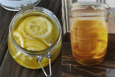 在封好容器之后,检查容器是否真正的封好了,确认容器不会漏气。然后将容器放入冰箱冷藏,中间不要将容器打开,打开容器的话会影响柠檬蜂蜜水的完成,还容易造成其的变质,所以我们需要耐心的等待。在等待差不多一周之后,我们就可以打开检查是否制作完成啦。制作好的柠檬蜂蜜水会散发出一种类似酒的香气,色泽也会变得金黄,让人垂涎三尺。