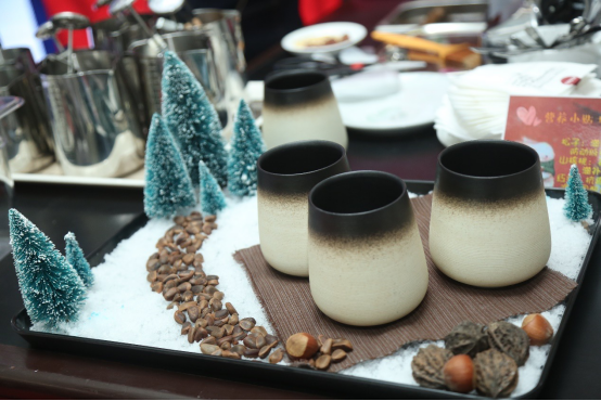 此次参赛的创意作品可圈可点,每位选手都可谓煞费苦心:茶的沁人心脾结合咖啡的浓香馥郁,选手们将古老的中华茶文化与世界咖啡文化完美结合。值得一提的是,更有用心的选手特别采用中国古典名著《红楼梦》中的“金陵十二钗”的主题来装饰屏风,意境十足;水果干果咖啡看似不相干的三个品类却组成味道与视觉双佳的新新饮品——可以“吃”的咖啡,这是其中一位选手用爱给自己的爱人调配的最独一无二的“专属早餐味道”;还有时尚炫酷的“咖啡魔术”,如同调酒一般,将咖啡层层分离,让人眼前一亮。经过层层角逐和激烈比拼,最终由石家庄北国商城店的牛四亮制作的名为《remember》的咖啡作品,斩获评审、媒体以及现场观众的一致好评摘得桂冠。其作品主要是表达他对东北家乡的思念,不仅装饰上极具东北特色——雪松、雪花、农作物,咖啡里面更是加入了东北特产,松子、榛子、核桃,还加了补血养颜的红枣,兼备营养与口味的顶级创意搭配。