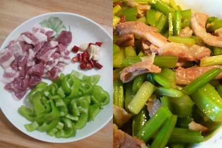 切好的猪肉条记得加生粉、酱油、油,腌制十分钟左右。准备工作做好后,架锅烧开水,加点盐。把芹菜段放入,三十秒后取出,放入冰水中,这样芹菜口感会比较的爽脆。热锅冷油,放入蒜、干辣椒爆香,再把沥干水的芹菜放入翻炒,起锅倒在碟子上。放猪肉进去翻炒,炒至变色,放入之前炒好的芹菜。大火爆炒几下,出锅。这样一盘芹菜炒肉就做好了。