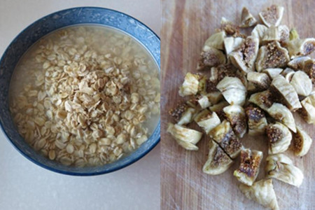 大米、糯米和燕麦片提前用清水泡半小时。无花果洗净切成小块。